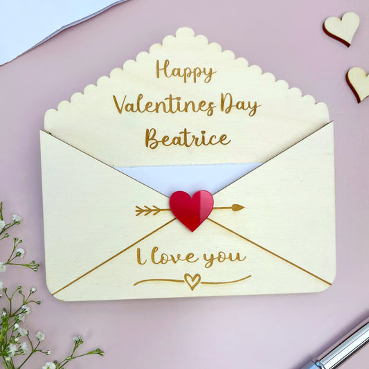Personalised Love Letter Envelope, Wooden Valentines Voucher Holder