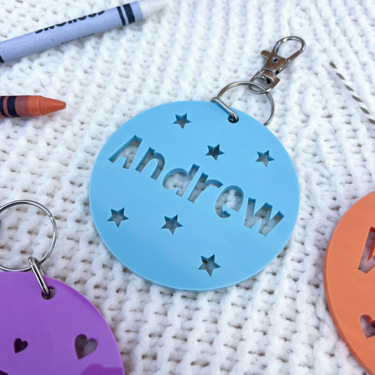 Personalised School Bag Tag Name Keyrings for Kids - Many designs and colours to choose from