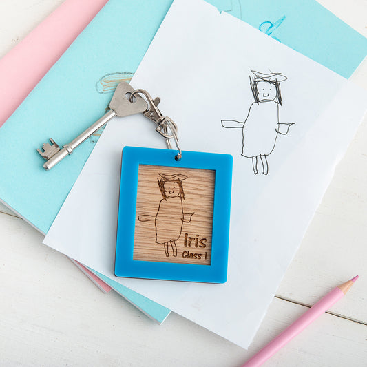 'Self Portrait' Engraved Childs Drawing Bag Tag Keyring