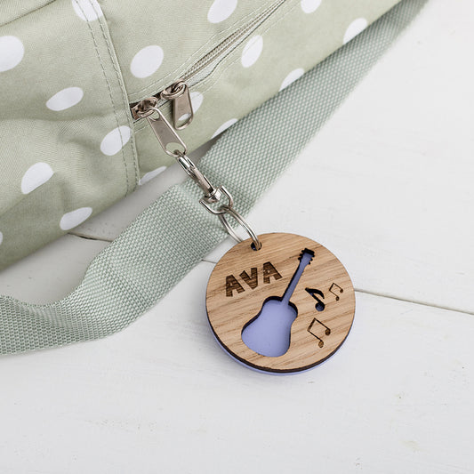 Personalised Wooden Kids School Bag Keyring - Rocket Design