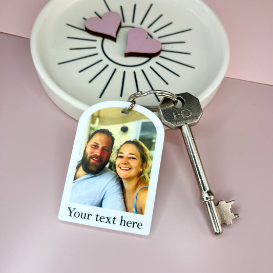 Arched custom photo keyring with personalised text