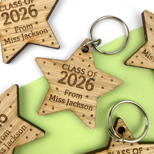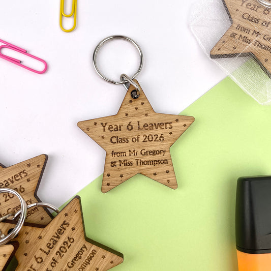 Year 6 leavers, Class of 2026, Personalised Wooden Star Keyrings