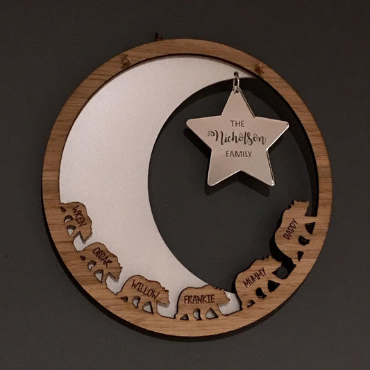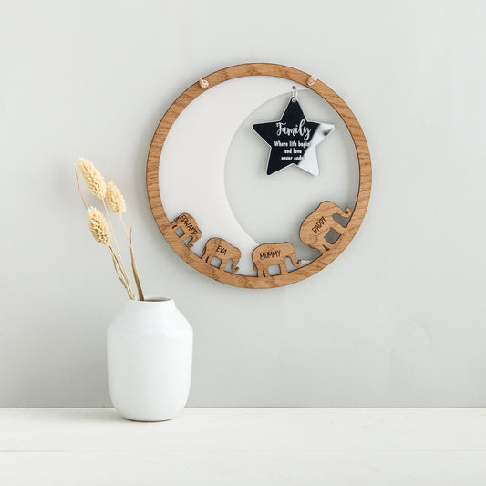 Elephant Family Wall Plaque, with Moon & Personalised Star