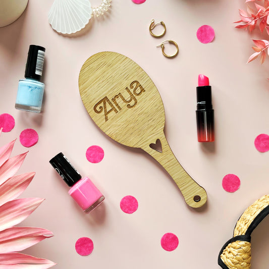 Pink Gingham Hand Mirror, with Engraved Personalised Name on reverse