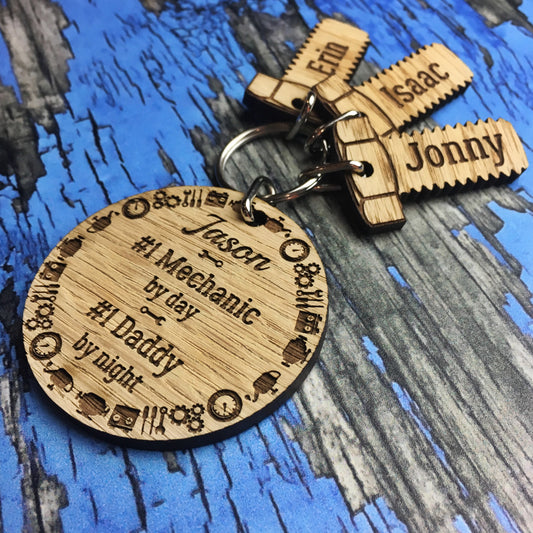 Personalised Cycling Father's Day Keyring with Wheel Name Charms