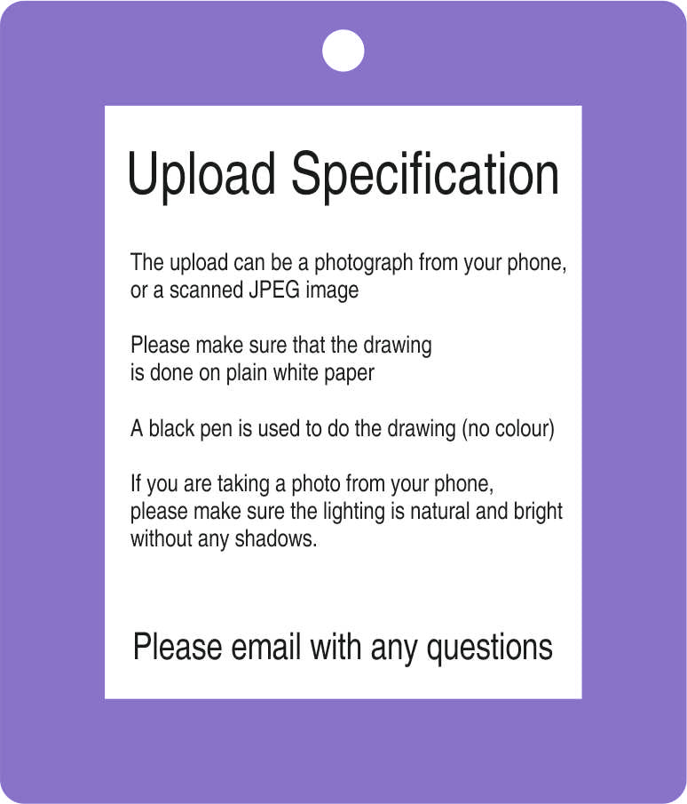 Please make sure that the drawing is done on plain white paper with a black pen. If you are taking a photo from your phone,