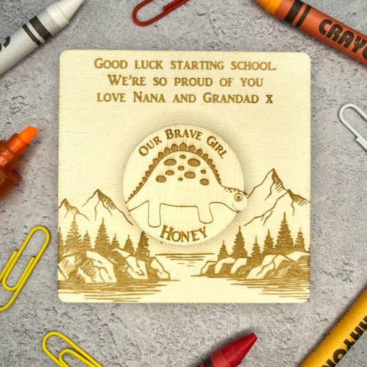 Personalised Dinosaur Themed Pocket Hug, First Day of School Hug Token Card