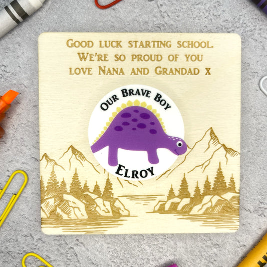 First Day of School Sunshine Brave Button & Wooden Card