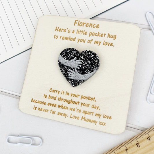 Personalised Back to School Pocket Hug Glitter Heart Token