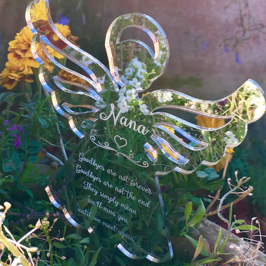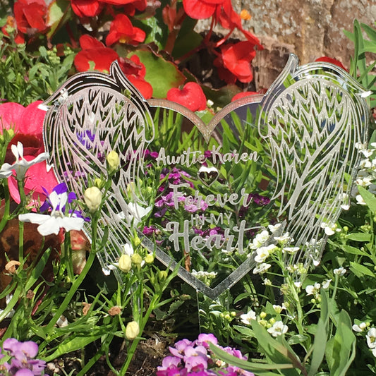Heart Shaped Angel Wings - Silver Mirrored Memorial Ground Decoration