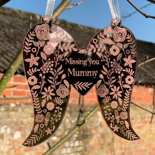 Floral Personalised Angel Wings | Remembrance Hanging Acrylic Decoration