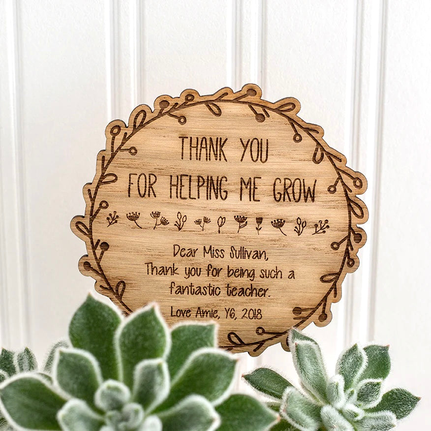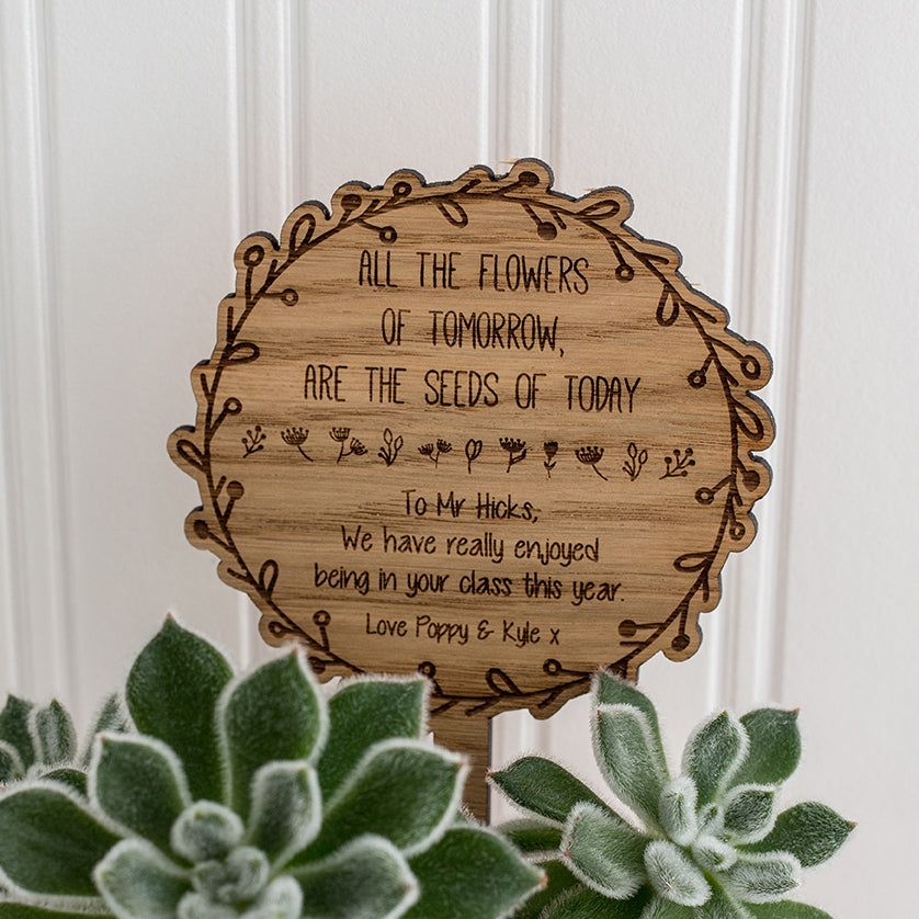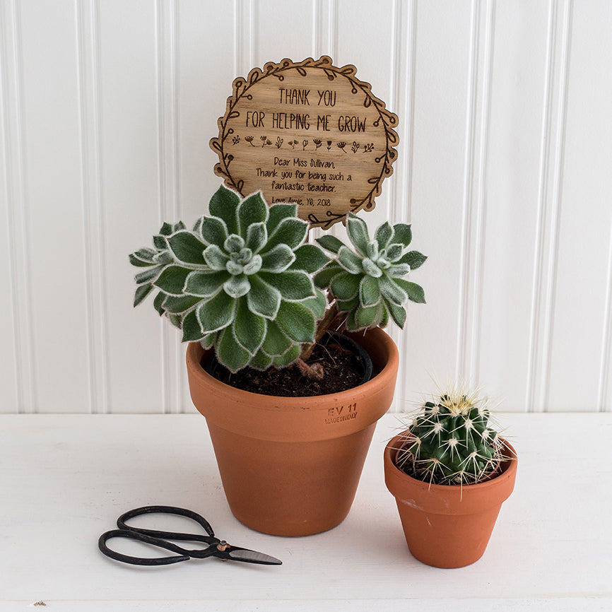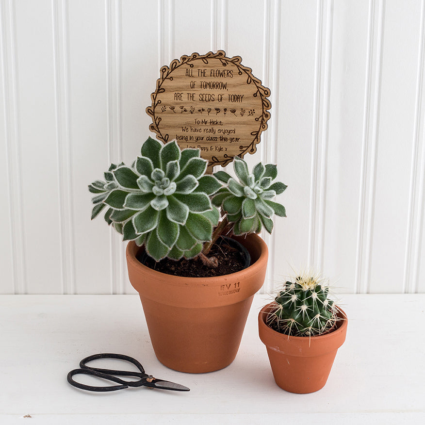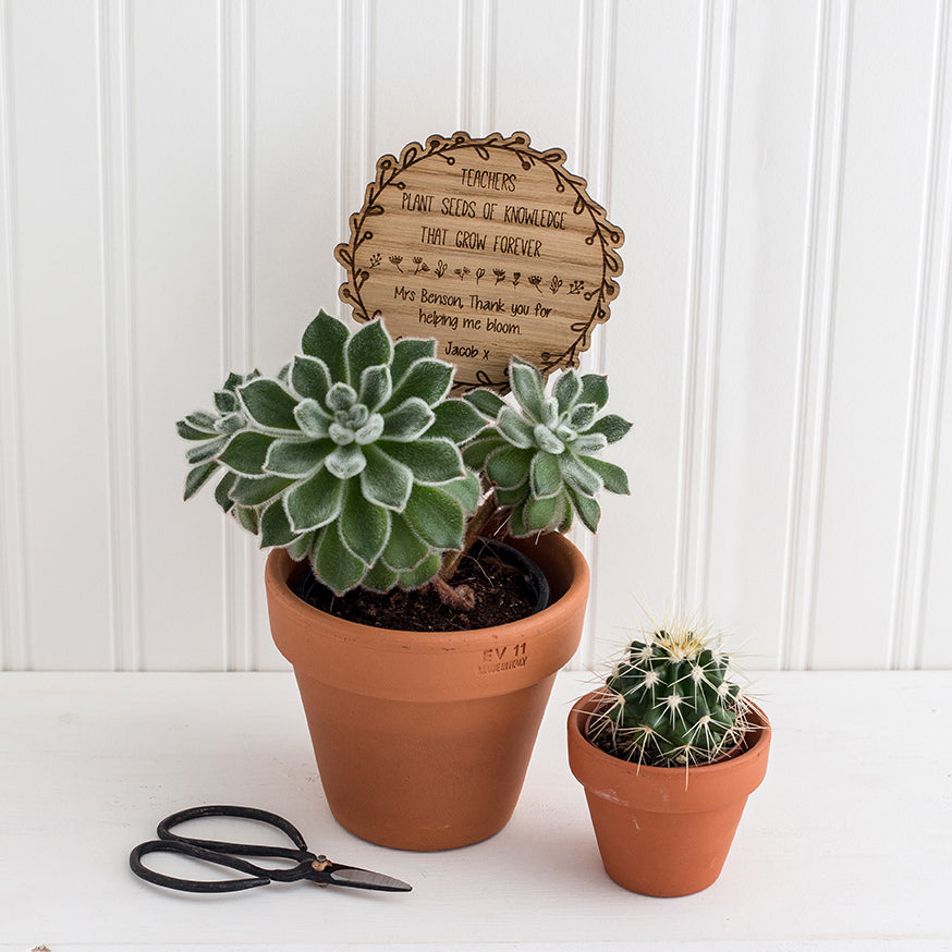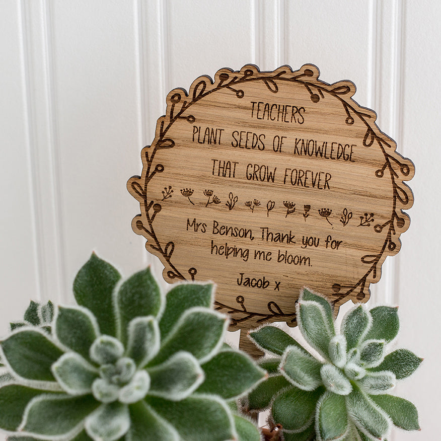 Wooden Pot Plant Sign - Personalised with your own wording - Teacher Appreciation Gift