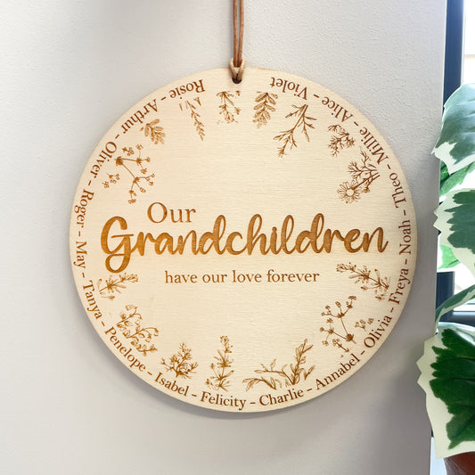 'Grandchildren' Engraved Wooden Floral Plaque