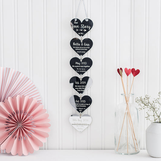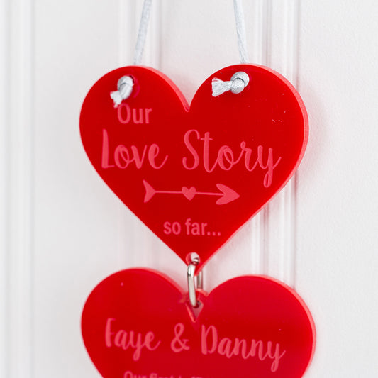 'Our Love Story' Hanging Hearts