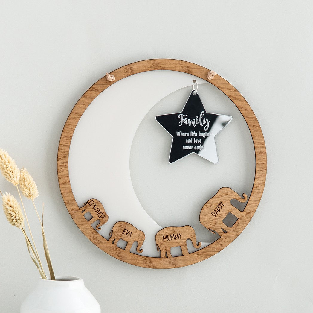 Elephant Family Wall Plaque, with Moon & Personalised Star