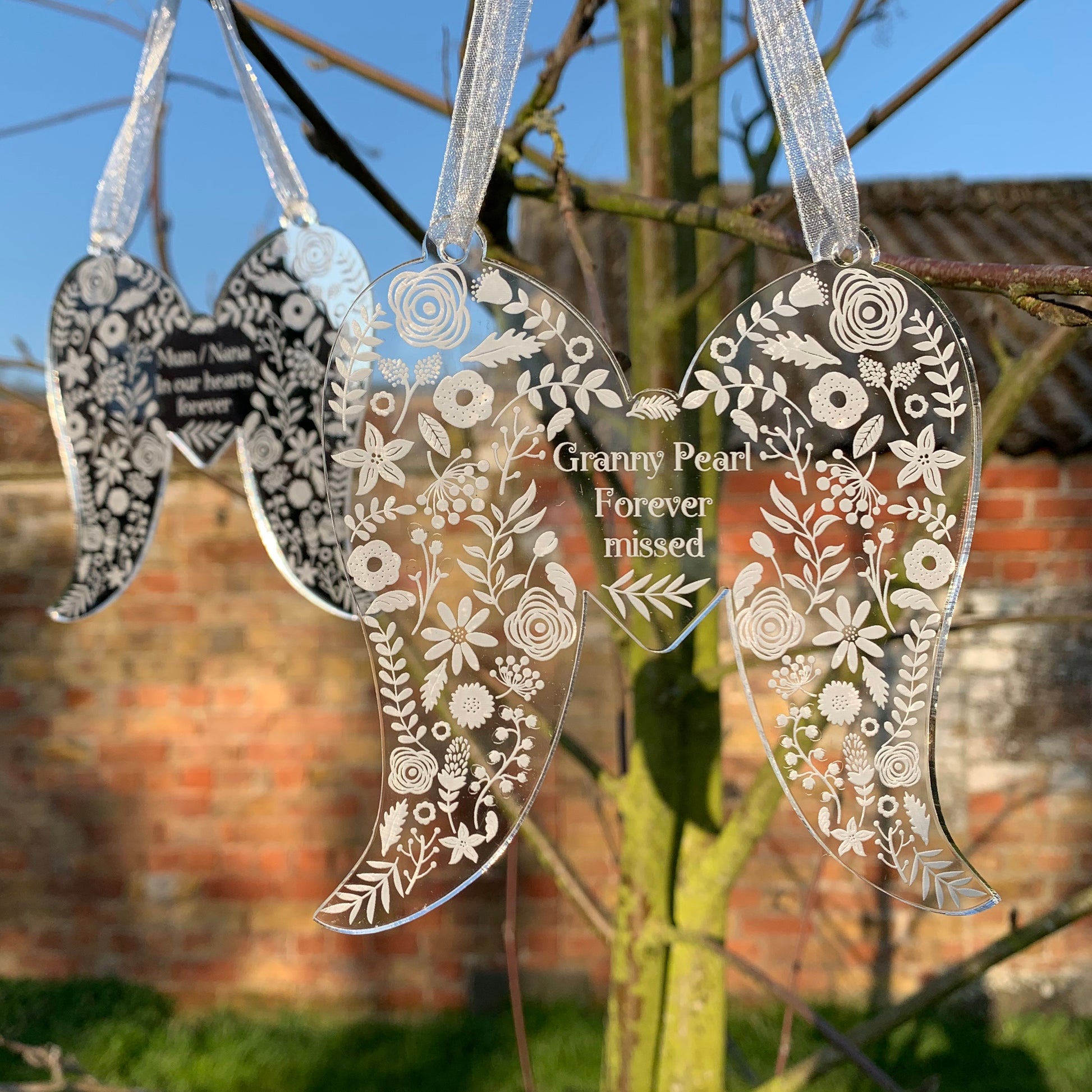 Floral Personalised Angel Wings | Remembrance Hanging Acrylic Decoration
