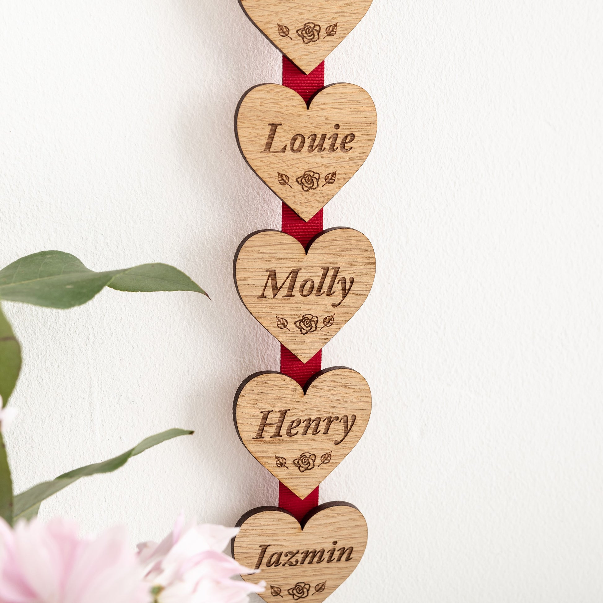 We are able to add up to 11 engraved hearts, personalised with a name on each.