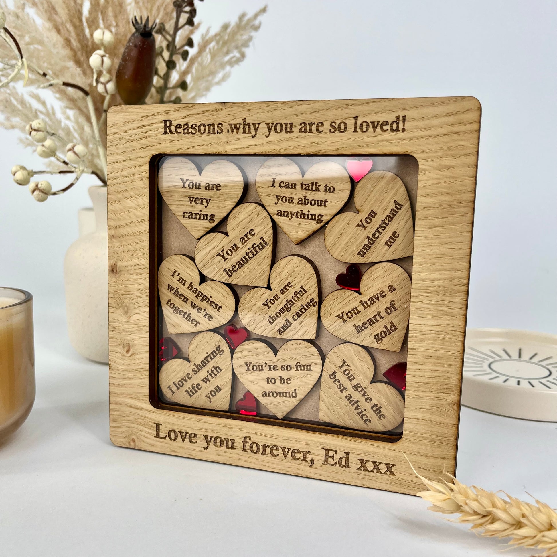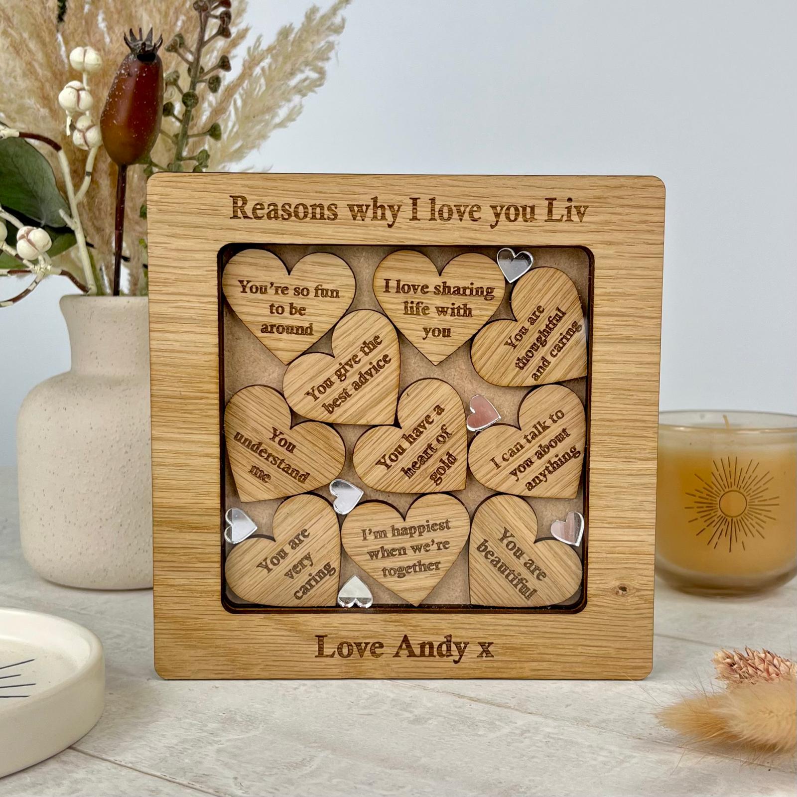 Let someone know how loved they are, and make them feel extra special with our custom keepsake 'reasons why I love you' frame.