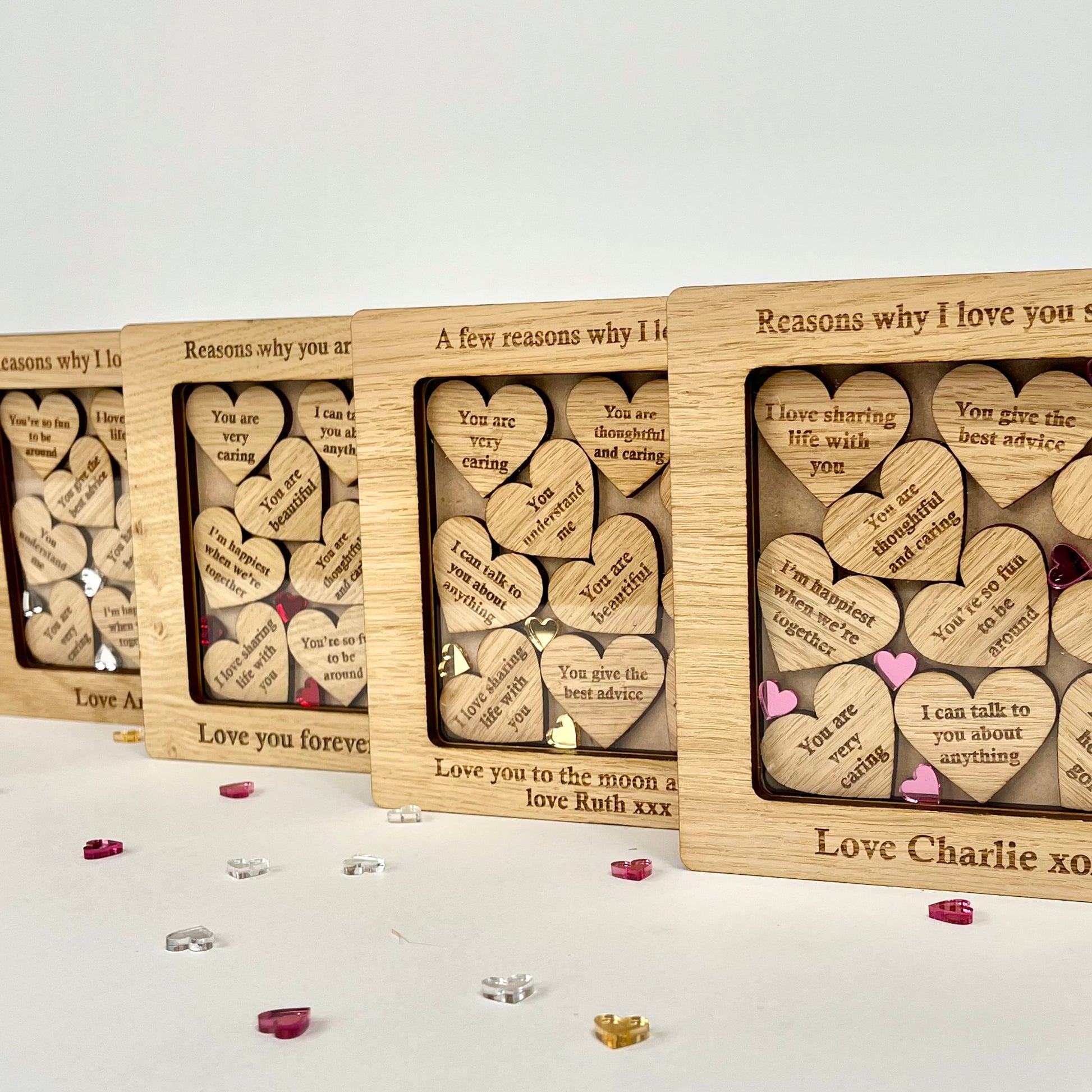 The option to have the frame containing our 10 standard reasons will have the following engraved on each heart: