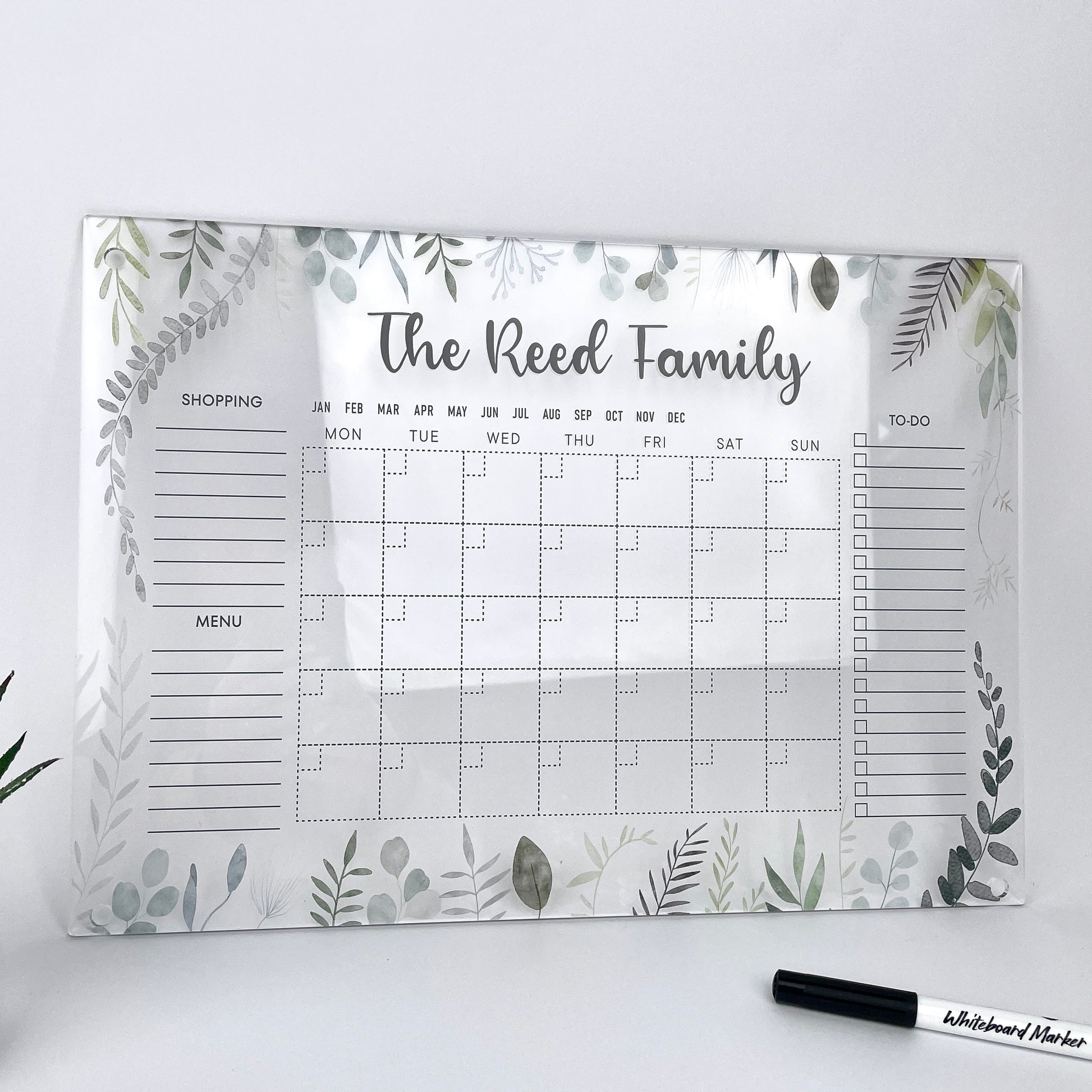 Our personalised monthly wall planner is the perfect way to plan for the month ahead. This planner has a decorative green eucalyptus design around the edge, space to plan your meals for the week, a shopping list, to-do list and a calendar with every day of the month. It has everything you need to keep organised.