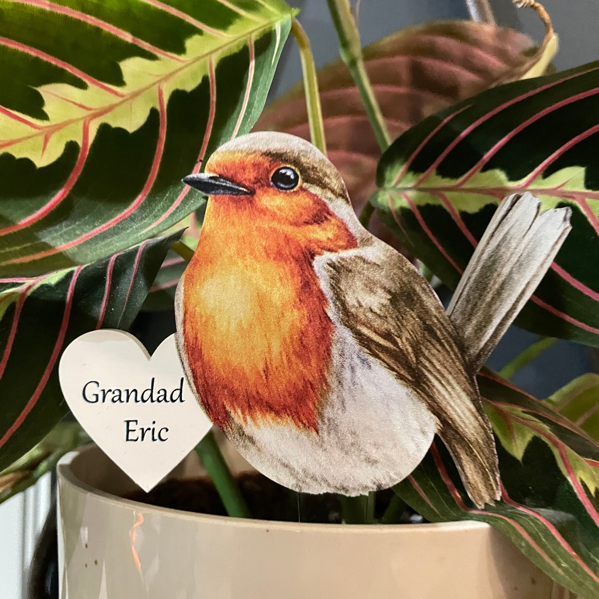 Remember someone, in loving memory and keep them close by with this robin house plant decoration.