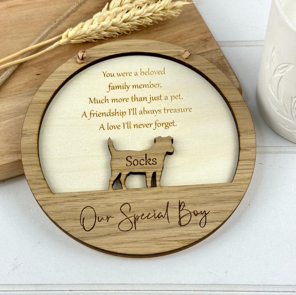 This wooden dog breed memorial plaque is the perfect keepsake to honor your beloved canine companion.